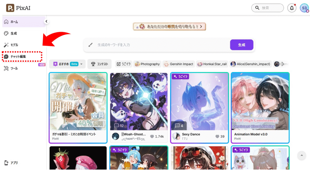 →PixAI公式サイトでチャット機能を試してみる